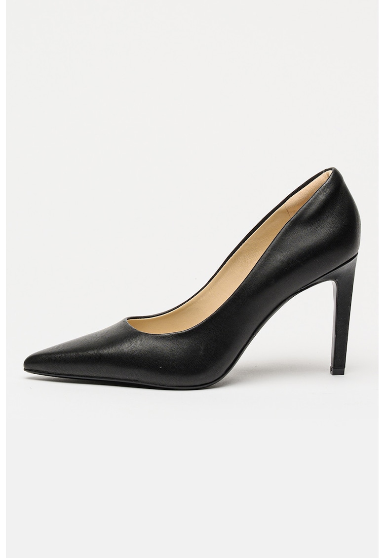 Caracteristici Tip: cu toc Material: piele naturala Culoare: negru Stil: elegant Varf: ascutit Tip toc: stiletto Sistem inchidere: fara inchidere Compozitie Partea superioara: piele Material interior: piele Material talpa: alte materiale Dimensiuni Inaltime toc: 5 cm