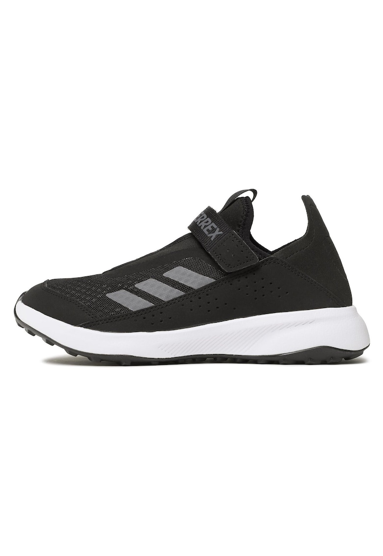 - piele ecologica Culoare: negru Sport: trekking Imprimeu: logo Stil: profil jos Tehnologie material: terrex Sistem inchidere: velcro Suprafata de joc: teren accidentat Tip sustinere: amortizare Compozitie Material interior: textil Material talpa: alte materiale Talpa exterioara: alte materiale