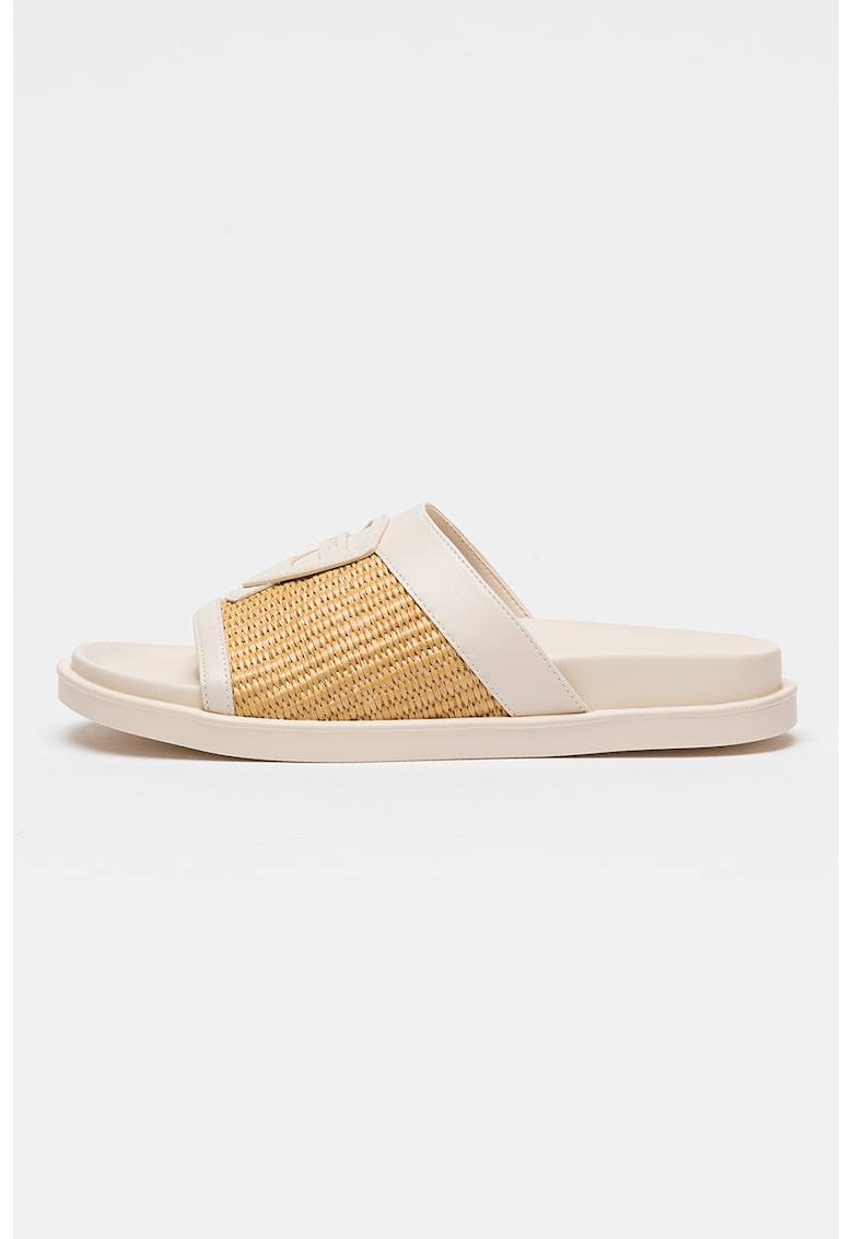 Caracteristici Tip produs: papuci Culoare: bej deschis Material: sintetic Stil: casual Imprimeu: uni Varf: rotund Tip talpa: plata Detalii: aplicatie logo