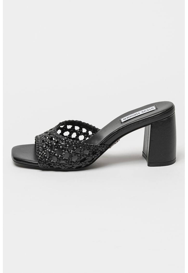 Caracteristici Tip produs: papuci Culoare: negru Material: sintetic Stil: casual Imprimeu: uni Varf: patrat Tip toc: masiv Compozitie Partea superioara: alte materiale Material interior: alte materiale Material talpa: alte materiale Dimensiuni Inaltime toc: 9.5 cm