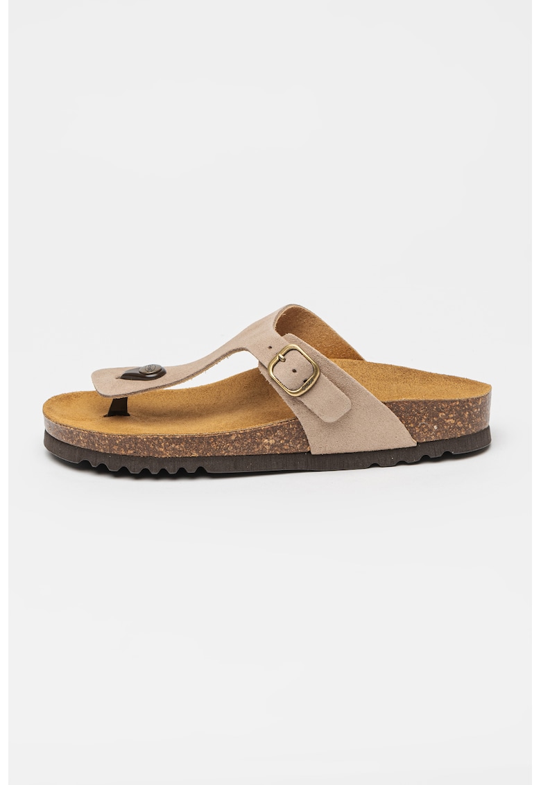 Caracteristici Culoare: bej inchis Material: piele intoarsa Stil: casual Imprimeu: uni Varf: rotund Tip talpa: plata Detalii: bareta separatoare Compozitie Partea superioara: piele intoarsa Material interior: piele
