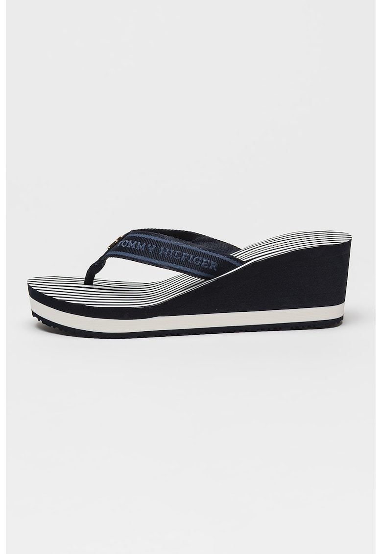 Caracteristici Tip produs: slapi Culoare: bleumarin Material: textil Stil: casual Imprimeu: logo Varf: rotund Tip talpa: wedge Compozitie Partea superioara: textil Material interior: alte materiale