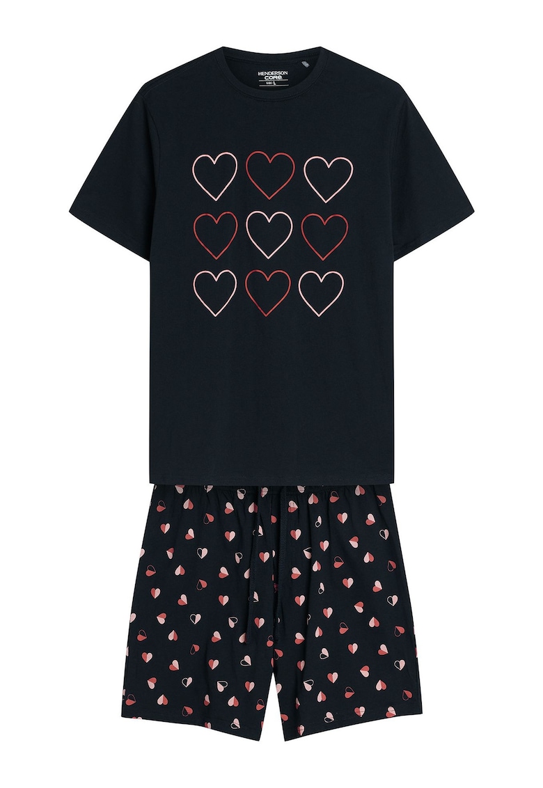 Caracteristici Tip produs: pijama Continut pachet: pantaloni scurti si tricou Culoare: negru Imprimeu: uni Material: bumbac Decolteu: rotund Lungime maneca: maneca scurta Talie: elastica