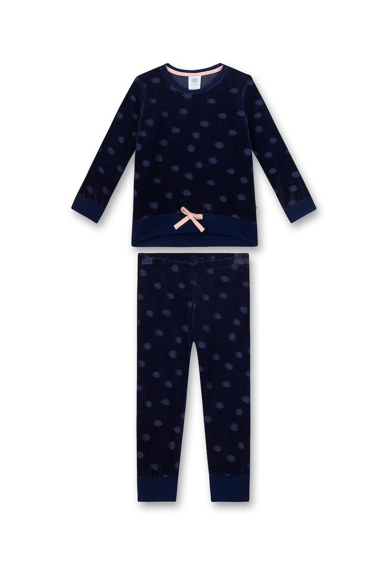 Caracteristici Tip produs: pijama Continut pachet: bluza si pantaloni de pijama Culoare: albastru inchis Material: poliester