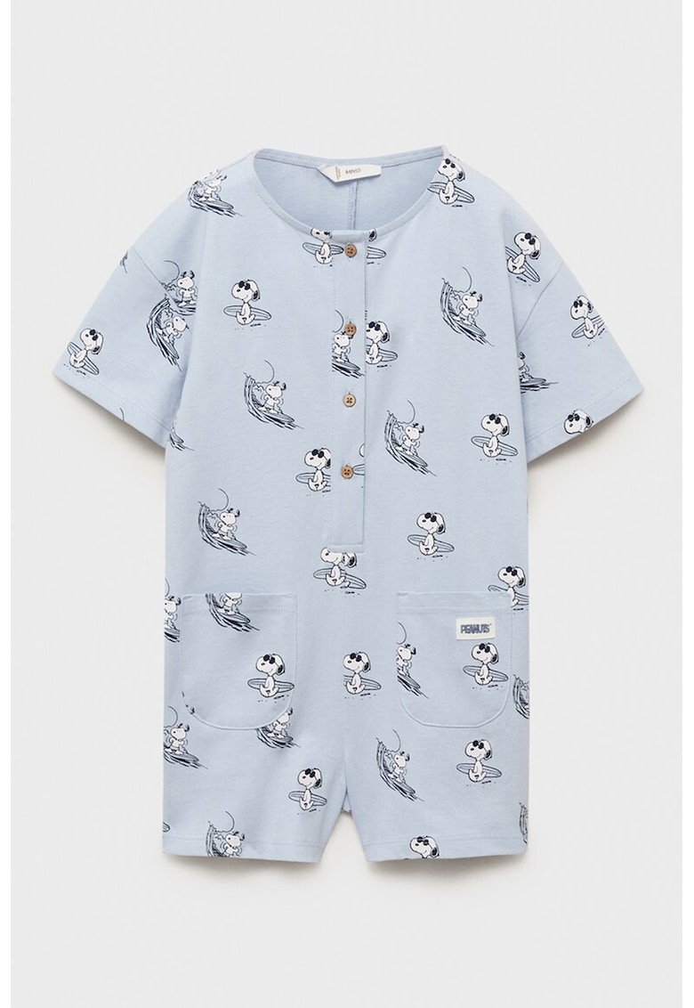 Caracteristici Tip produs: pijama Numar piese: 1 Culoare: albastru pastel Material: bumbac Imprimeu: desene animate Poveste/Personaj: snoopy Decolteu: rotund Lungime maneca: maneca scurta Buzunare: 2 aplicate Sistem inchidere: nasturi Colectie: primavara