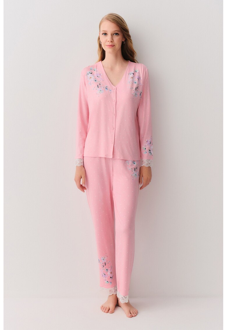 - buline Decolteu: in v Croiala: regular fit Lungime maneca: maneca lunga Lungime pantaloni: lungi Sistem inchidere: nasturi Compozitie Exterior: 95% viscoza