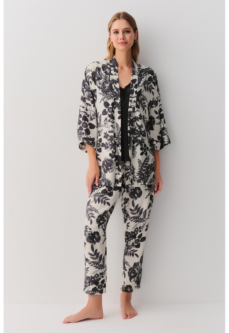 - floral Decolteu: in v Croiala: regular fit Lungime maneca: maneca lunga Lungime pantaloni: lungi Detalii: continutul pachetului: top de pijama