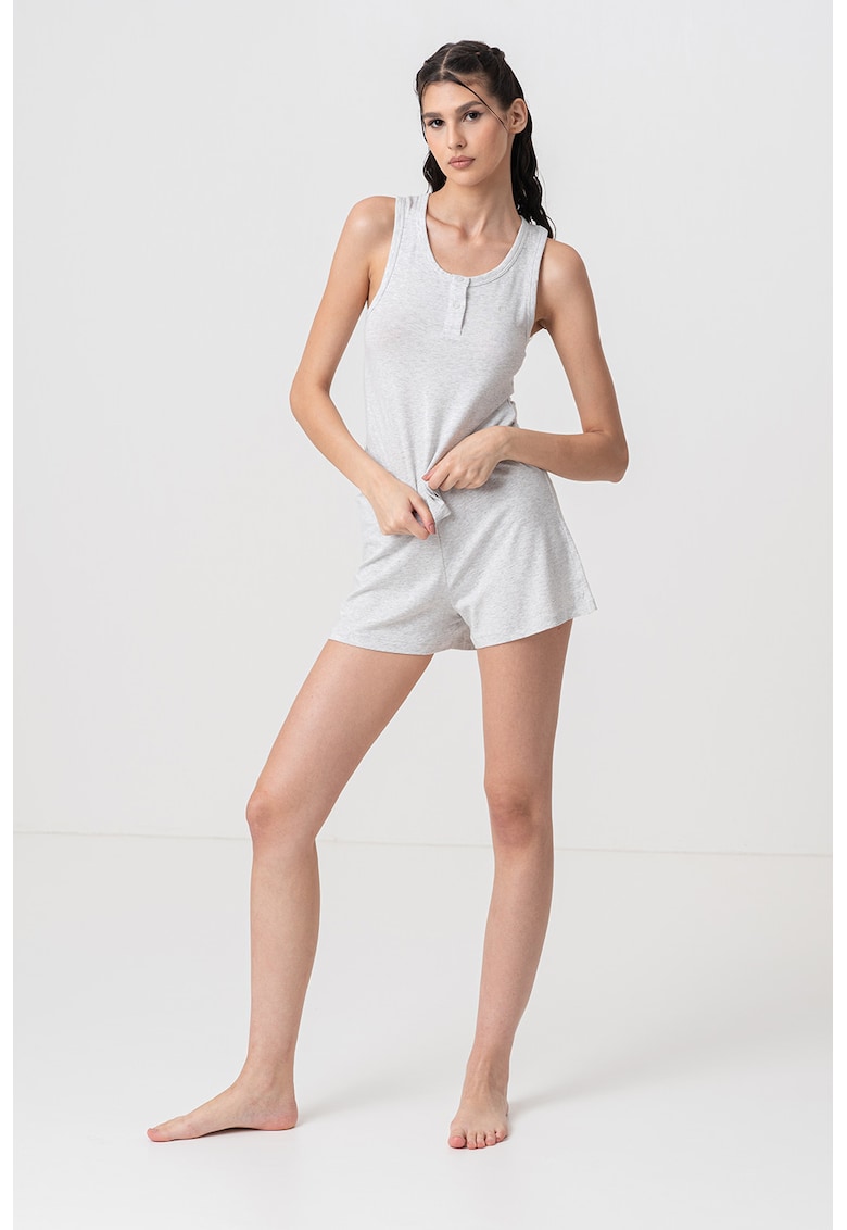 Caracteristici Tip produs: pantaloni de pijama Culoare: gri melange Material: modal Imprimeu: uni Talie: elastica Lungime pantaloni: scurti Sistem inchidere: fara inchidere Compozitie Exterior: 57% bumbac organic