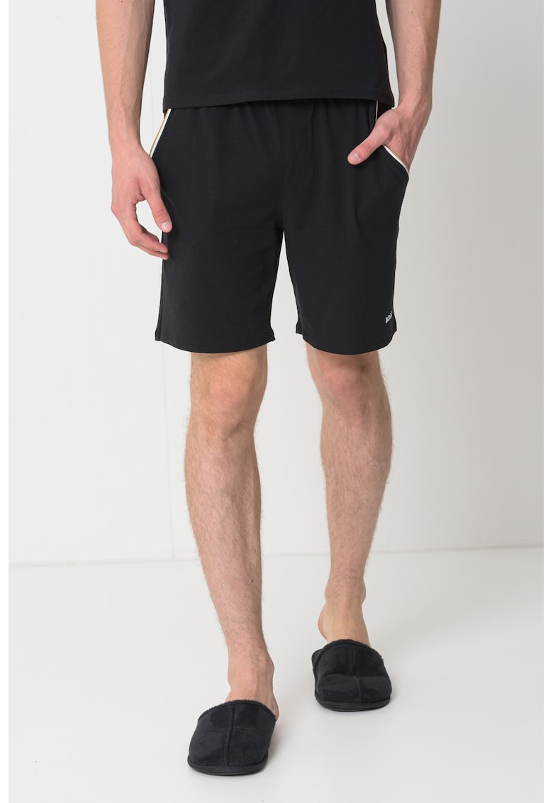 Caracteristici Tip produs: pantaloni de pijama Culoare: negru Imprimeu: uni Material: bumbac Talie: elastica Lungime pantaloni: scurti Buzunare: 2 laterale Detalii: snur pentru ajustare Sistem inchidere: fara inchidere Compozitie Exterior: 95% bumbac