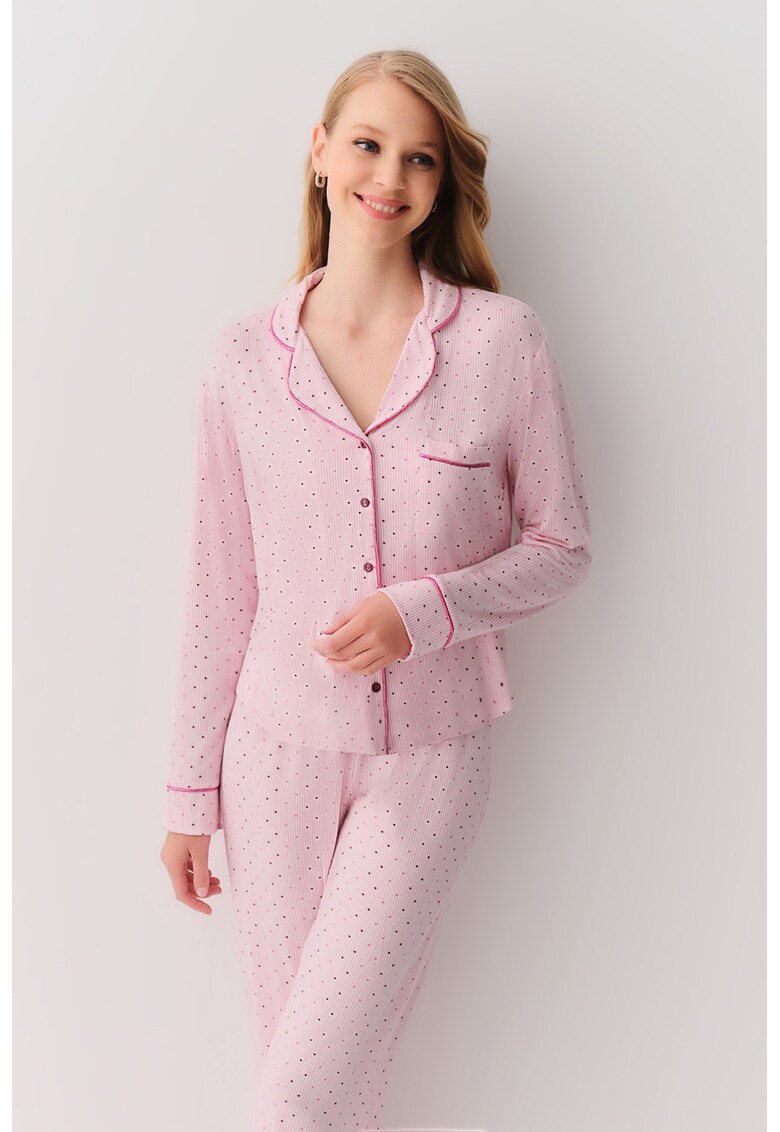 - stelute Decolteu: in v Guler: cu revere decupate Croiala: regular fit Lungime maneca: maneca lunga Lungime pantaloni: lungi Buzunare: 1 piept Sistem inchidere: fara inchidere
