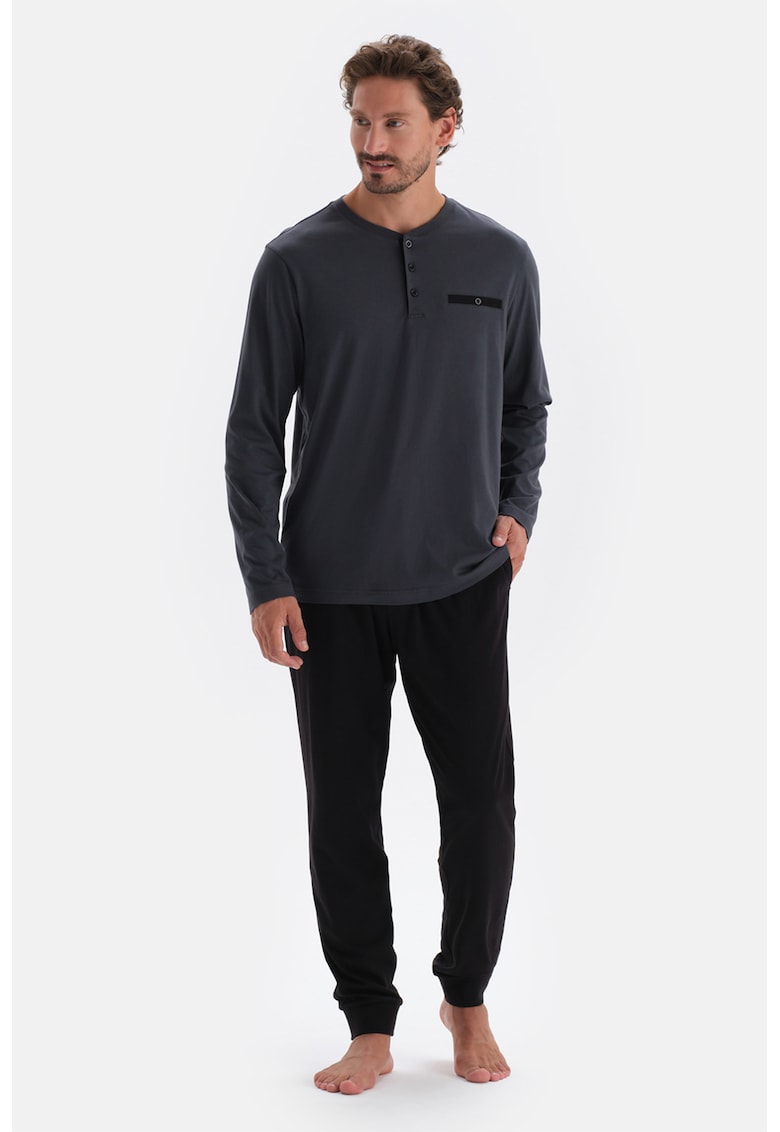 - modal Decolteu: la baza gatului Lungime maneca: maneca lunga Talie: medie Lungime pantaloni: lungi Detalii: snur pentru ajustare in talie Compozitie Exterior: 50% bumbac
