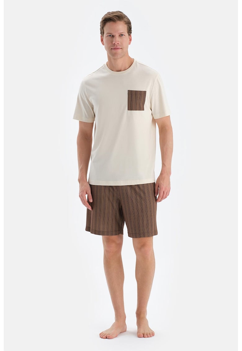 - modal Decolteu: la baza gatului Lungime maneca: maneca scurta Talie: medie Lungime pantaloni: scurti Sistem inchidere: fara inchidere Compozitie Exterior: 50% modal