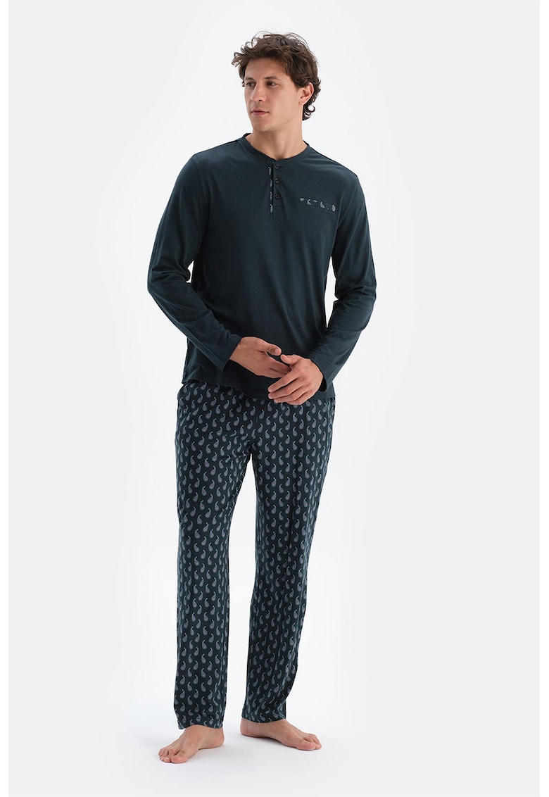 - inchis cu nasturi Lungime maneca: maneca lunga Talie: medie Lungime pantaloni: lungi Buzunare: 2 oblice Sistem inchidere: fara inchidere Compozitie Exterior: 50% modal