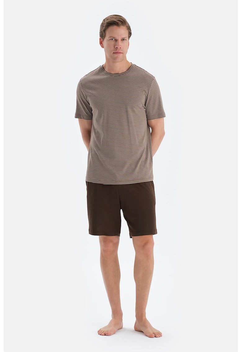 - modal Decolteu: la baza gatului Lungime maneca: maneca scurta Talie: medie Lungime pantaloni: scurti Sistem inchidere: fara inchidere Compozitie Exterior: 50% modal