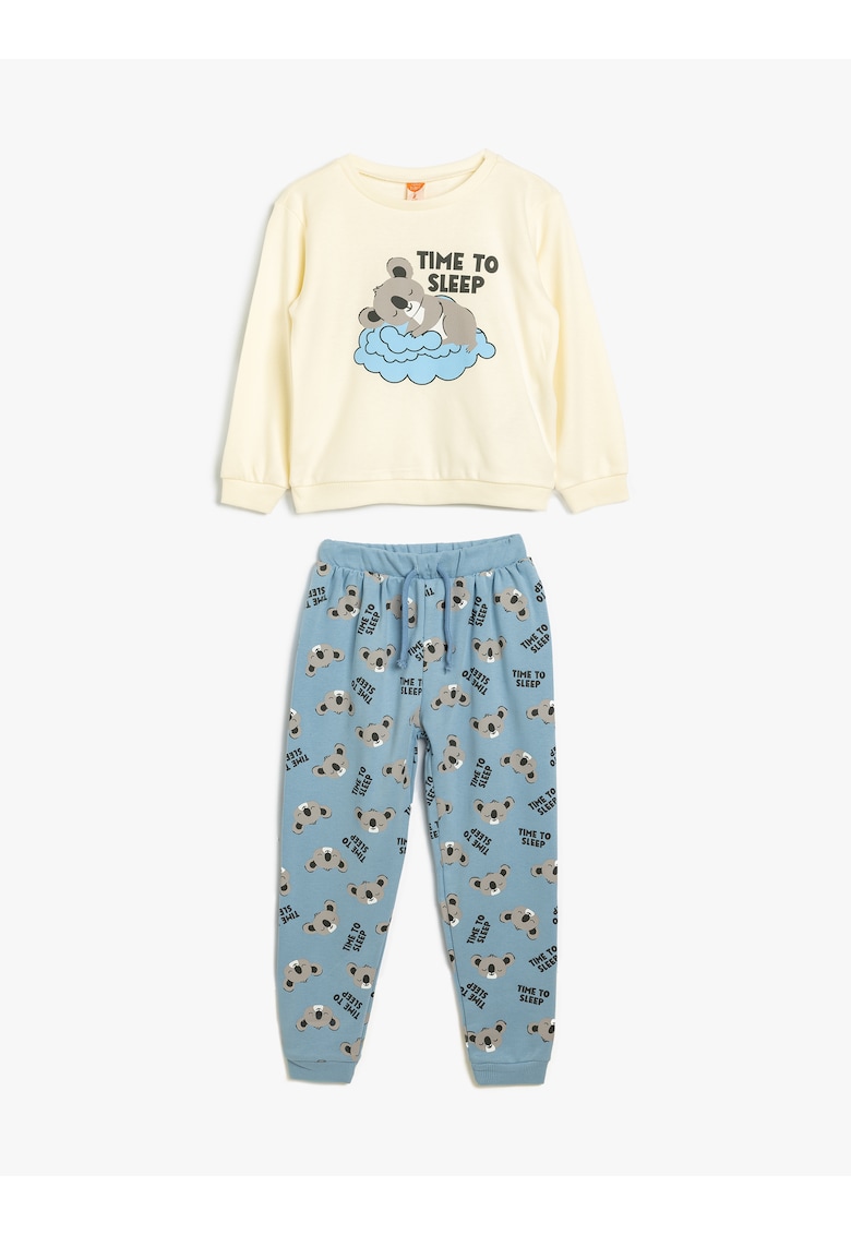 Caracteristici Tip produs: pijama Continut pachet: bluza si pantaloni Culoare: alb fildes Material: bumbac Imprimeu: grafic Decolteu: la baza gatului Lungime maneca: maneca lunga Detalii: terminatie si mansete elastice Sistem inchidere: fara inchidere Compozitie Exterior: bumbac