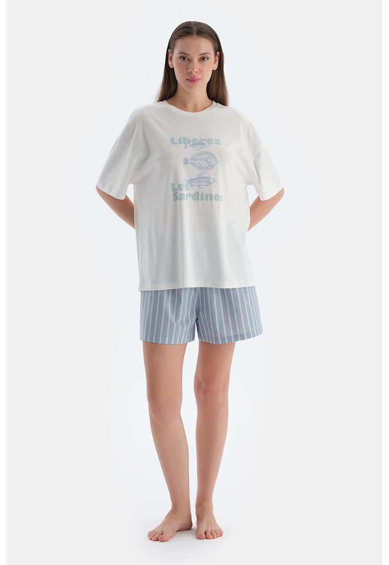 - grafic Decolteu: la baza gatului Croiala: lejer Maneci: cazute Lungime maneca: maneca scurta Talie: inalta Lungime pantaloni: scurti Sistem inchidere: fara inchidere Compozitie Exterior: 50% modal