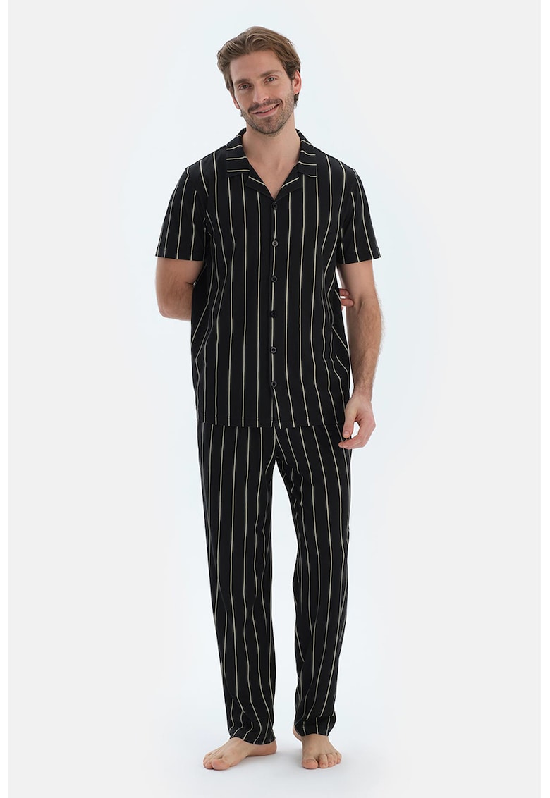 - modal Decolteu: in v Guler: cu revere Lungime maneca: maneca scurta Lungime pantaloni: lungi Sistem inchidere: nasturi Compozitie Exterior: 50% bumbac