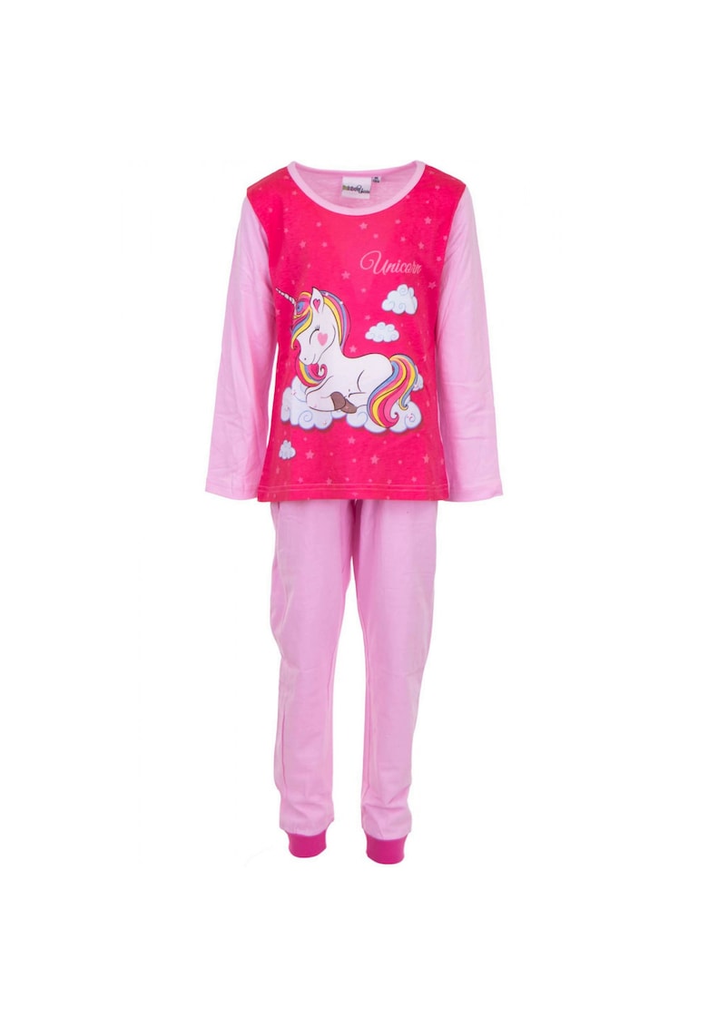 Caracteristici Tip produs: pijama Numar piese: 2 Continut pachet: 1 x pantaloni lungi + 1 x bluza maneca lunga Culoare: roz Material: bumbac Imprimeu: logo Decolteu: la baza gatului Lungime maneca: maneca lunga Sistem inchidere: fara inchidere Colectie: primavara