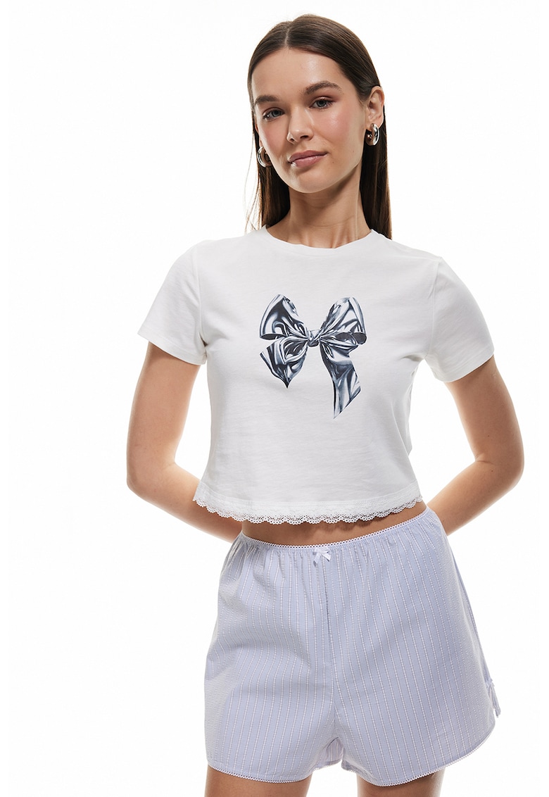 - alb murdar Material: bumbac Decolteu: la baza gatului Croiala: regular fit Lungime maneca: maneca scurta Detalii: funda Sistem inchidere: fara inchidere Compozitie Exterior: 100% bumbac