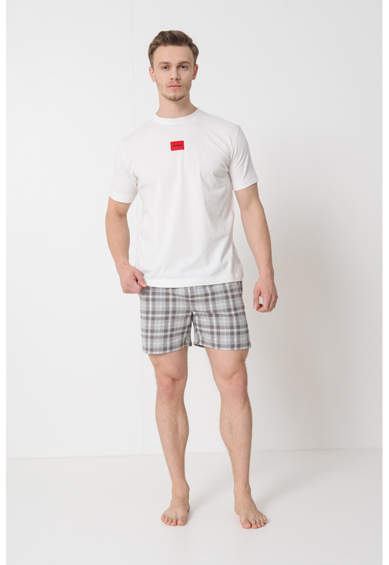 Caracteristici Tip produs: pijama Culoare: alb murdar Imprimeu: carouri Material: bumbac Decolteu: la baza gatului Lungime maneca: maneca scurta Lungime pantaloni: scurti Sistem inchidere: fara inchidere Compozitie Exterior: 100% bumbac Info model Modelul poarta un produs de marimea M. Marimi model: 191 cm inaltime