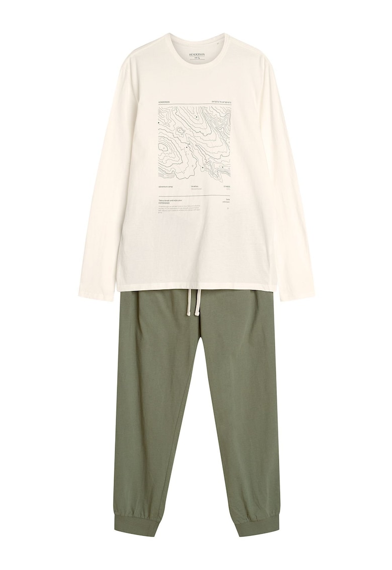 - crem Imprimeu: grafic Material: bumbac Decolteu: rotund Lungime maneca: maneca lunga Talie: medie Lungime pantaloni: lungi Buzunare: fara Sistem inchidere: snur