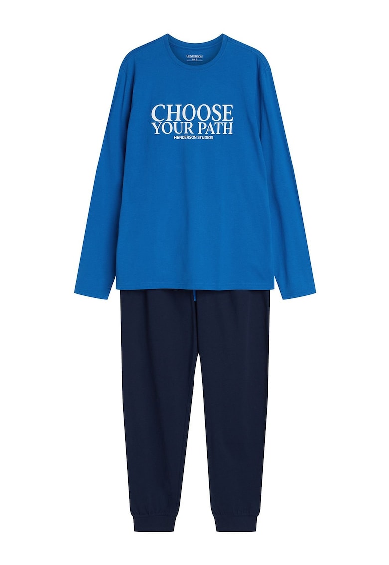 Caracteristici Tip produs: pijama Continut pachet: 1 bluza + 1 pantalon Culoare: albastru turcoaz Imprimeu: grafic Material: bumbac Decolteu: rotund Lungime maneca: maneca lunga Talie: medie Lungime pantaloni: lungi Buzunare: fara Sistem inchidere: snur