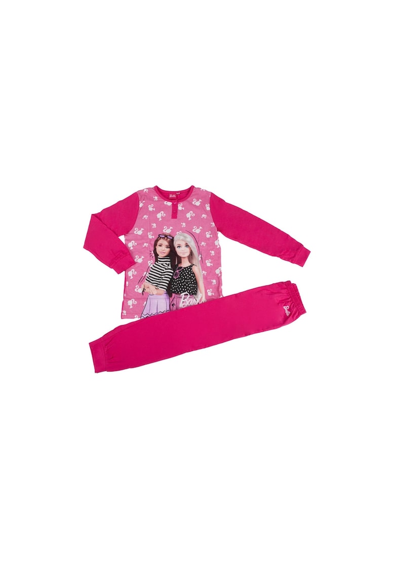 Caracteristici Tip produs: pijama Numar piese: 2 Culoare: fucsia Material: bumbac Imprimeu: logo Poveste/Personaj: barbie Decolteu: fenta cu nasturi Lungime maneca: maneca lunga Sistem inchidere: fara inchidere Colectie: primavara