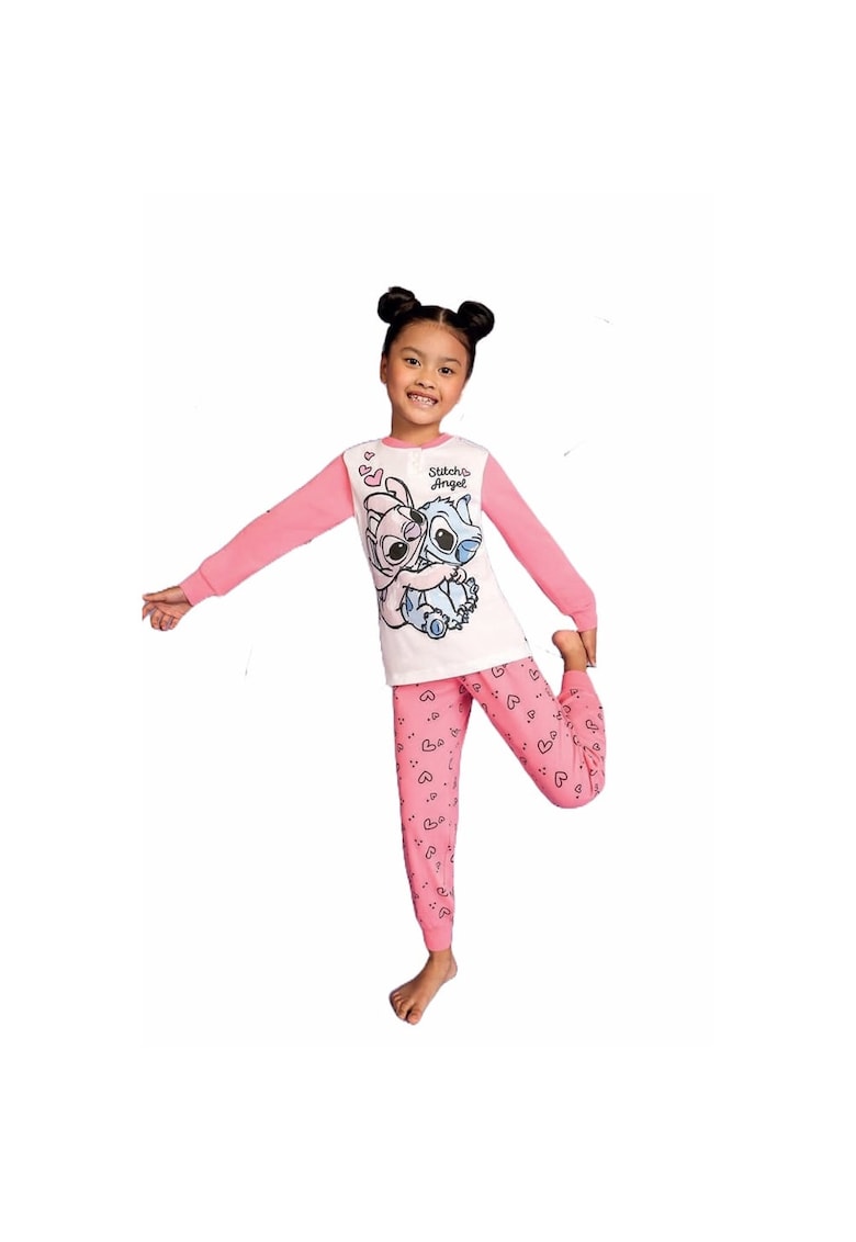Caracteristici Tip produs: pijama Numar piese: 2 Culoare: roz Material: bumbac Imprimeu: logo Poveste/Personaj: stitch Decolteu: fenta cu nasturi Lungime maneca: maneca lunga Sistem inchidere: fara inchidere Colectie: primavara