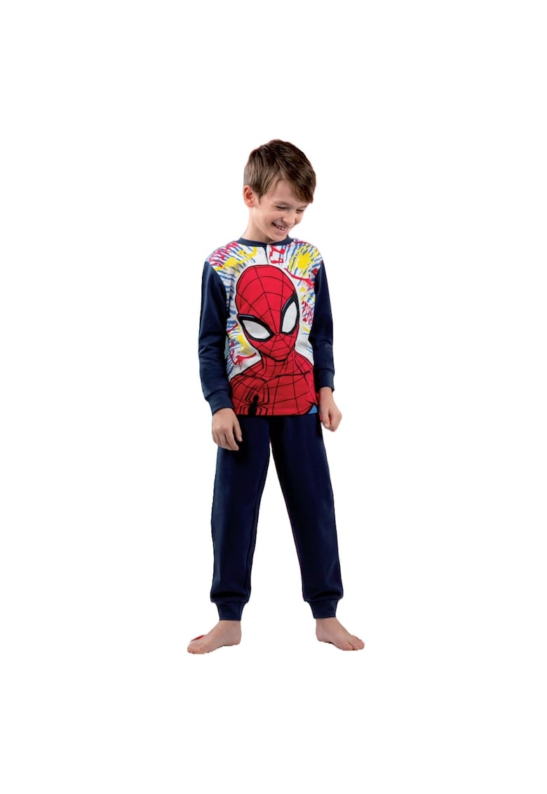 Caracteristici Tip produs: pijama Numar piese: 2 Culoare: bleumarin Material: bumbac Imprimeu: logo Poveste/Personaj: spider-man Decolteu: fenta cu nasturi Lungime maneca: maneca lunga Sistem inchidere: fara inchidere Colectie: primavara