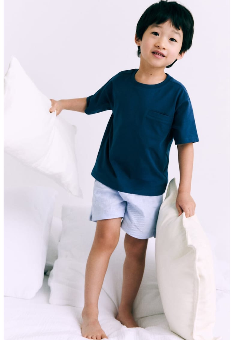 - albastru petrol Material: bumbac Imprimeu: dungi Decolteu: la baza gatului Lungime maneca: maneca scurta Detalii: snur pentru ajustare in talie Compozitie Exterior: 100% bumbac