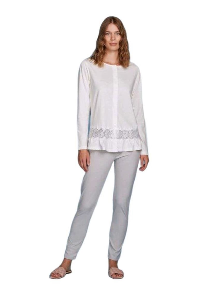 Caracteristici Tip produs: pijama Culoare: alb Material: bumbac Imprimeu: logo Decolteu: decolteu la baza gatului Croiala: regular fit Maneci: lungi Lungime maneca: maneca lunga Lungime pantaloni: lungi Detalii: 100 % bumbac Sistem inchidere: nasturi