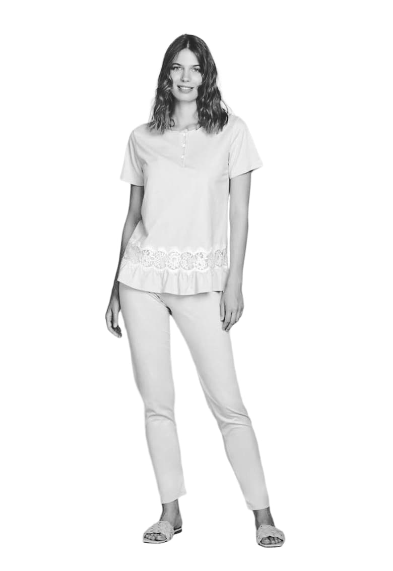 Caracteristici Tip produs: pijama Culoare: alb Material: bumbac Imprimeu: logo Decolteu: decolteu la baza gatului Croiala: regular fit Maneci: lungi Lungime maneca: maneca lunga Lungime pantaloni: lungi Detalii: 100 % bumbac Sistem inchidere: fara inchidere