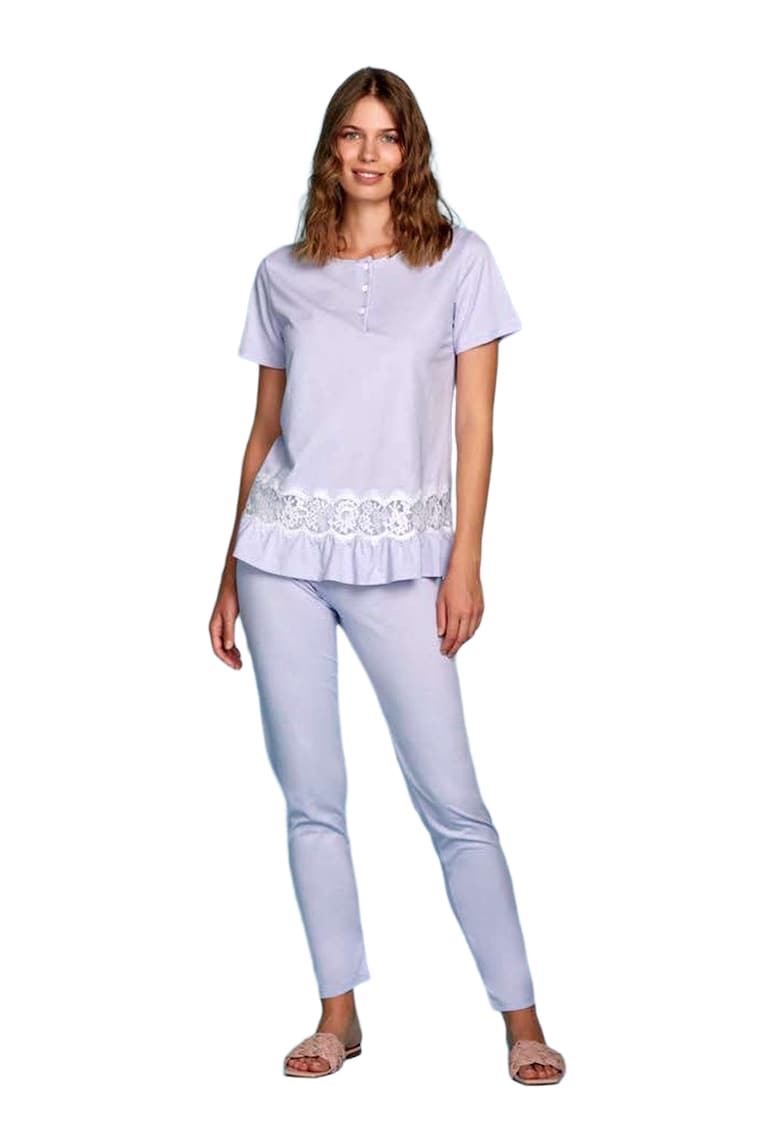 Caracteristici Tip produs: pijama Culoare: violet Material: bumbac Imprimeu: logo Decolteu: decolteu la baza gatului Croiala: regular fit Maneci: lungi Lungime maneca: maneca lunga Lungime pantaloni: lungi Detalii: 100 % bumbac Sistem inchidere: fara inchidere