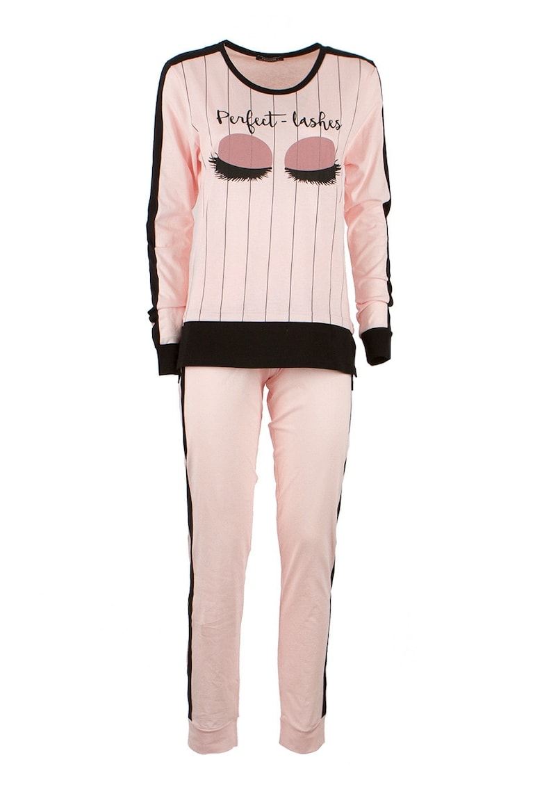 Caracteristici Tip produs: pijama Culoare: roz Material: bumbac Imprimeu: logo Decolteu: decolteu la baza gatului Croiala: regular fit Maneci: lungi Lungime maneca: maneca lunga Lungime pantaloni: lungi Detalii: 100 % bumbac Sistem inchidere: fara inchidere