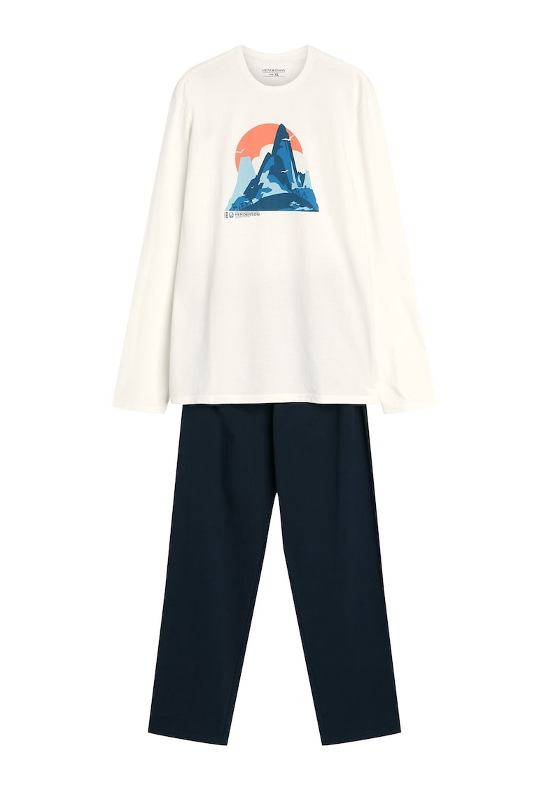 Caracteristici Tip produs: pijama Continut pachet: 1 bluza + 1 pantalon Culoare: albastru Imprimeu: grafic Material: bumbac Decolteu: rotund Lungime maneca: maneca lunga Talie: medie Lungime pantaloni: lungi Buzunare: fara Sistem inchidere: fara inchidere