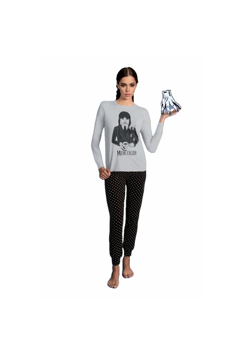 Caracteristici Tip produs: pijama Numar piese: 2 Continut pachet: 1 x pantaloni lungi + 1 x bluza maneca lunga Culoare: negru