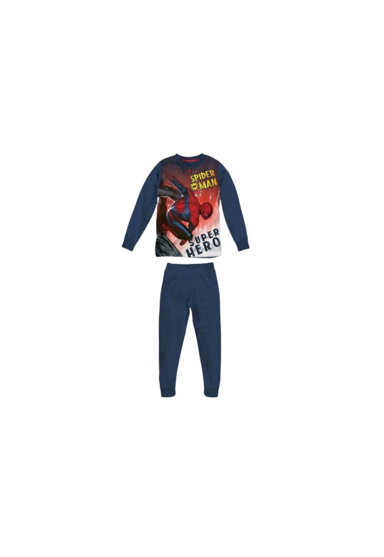 Caracteristici Tip produs: pijama Numar piese: 2 Continut pachet: 1 x pantaloni lungi + 1 x bluza maneca lunga Culoare: albastru Material: bumbac Imprimeu: grafic Poveste/Personaj: spider-man Decolteu: cu fenta scurta cu nasturi Lungime maneca: maneca lunga Sistem inchidere: fara inchidere Colectie: primavara