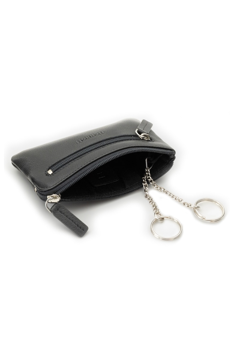 Caracteristici Culoare: negru Material: piele naturala Imprimeu: uni Buzunare: 1 buzunar cu fermoar exterior Detalii: 2 inele pentru chei Sistem inchidere: fermoar Linie Brand: richhoff Colectie: all seasons