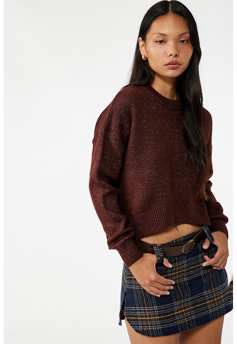 Caracteristici Tip produs: pulover Culoare: maro Imprimeu: uni Material: poliester