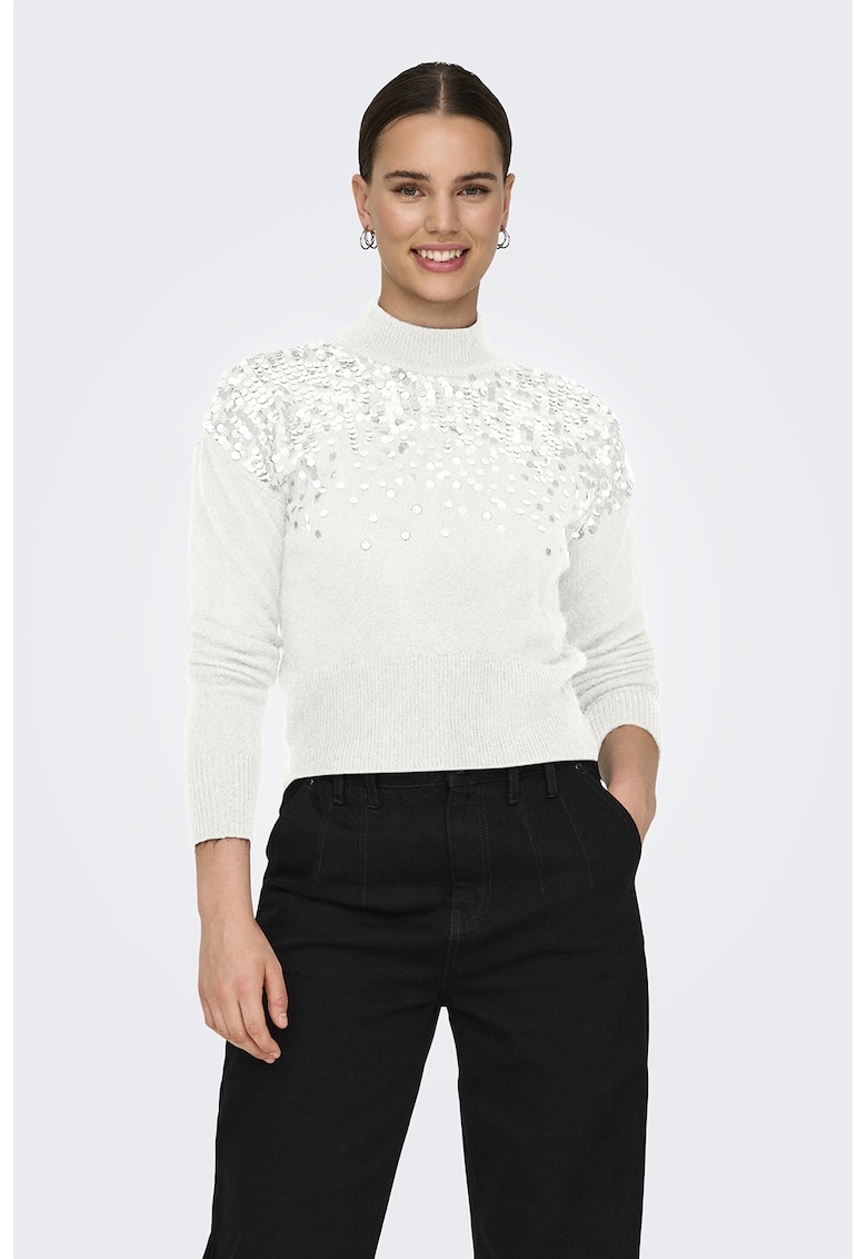 Caracteristici Tip produs: pulover Culoare: alb Imprimeu: uni Material: sintetic Croiala: regular fit Sistem inchidere: fara inchidere Lungime maneca: maneca lunga Tip maneca: ampla Detalii: aplicatii de paiete Compozitie Exterior: 75% acrilic