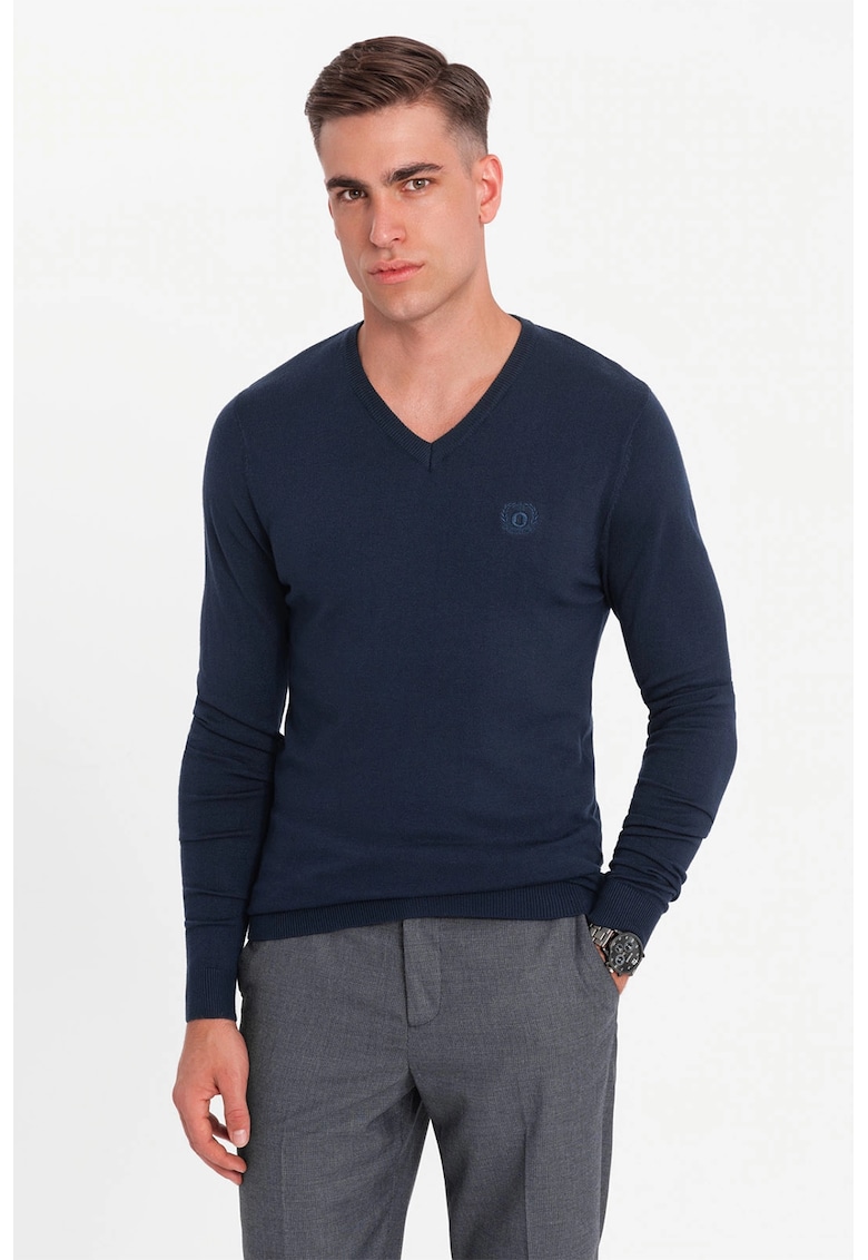 Caracteristici Culoare: bleumarin Imprimeu: uni Material: sintetic Croiala: slim fit Sistem inchidere: fara inchidere Model: in v Lungime maneca: maneca lunga Detalii: material tricotat fin Compozitie Exterior: exterior: 59.5% bumbac