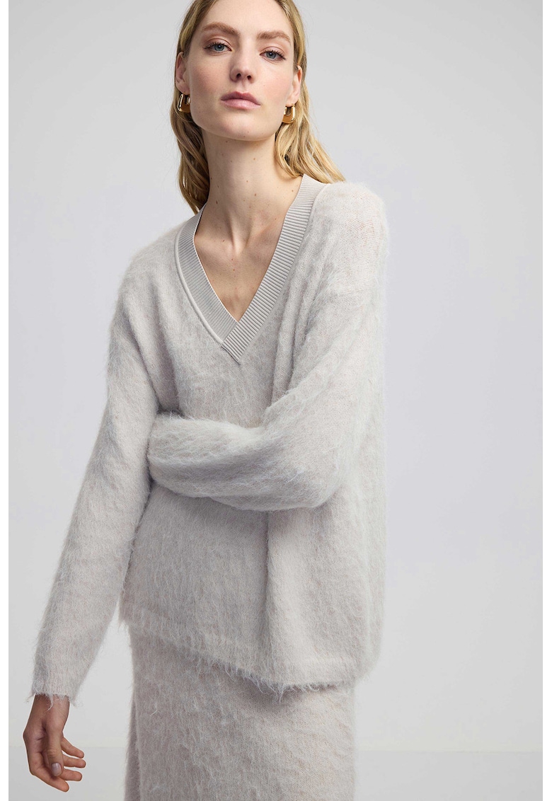 - acril Model: in v Croiala: lejer Sistem inchidere: fara inchidere Lungime maneca: maneca lunga Tip maneca: ampla Compozitie Exterior: 48% poliamida