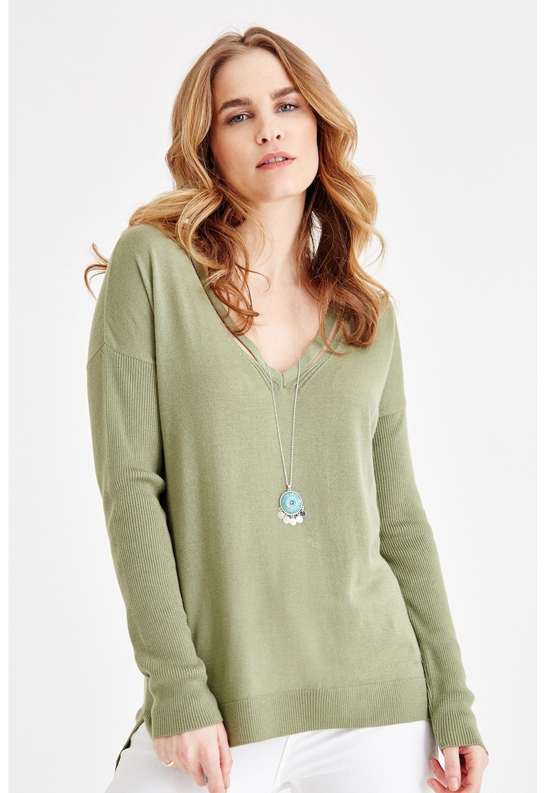 Caracteristici Tip produs: pulover Culoare: verde sparanghel Imprimeu: uni Material: viscoza