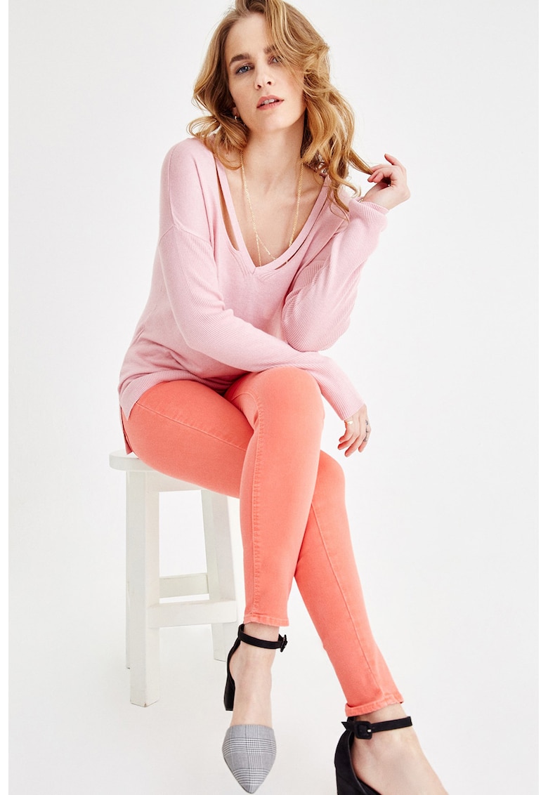 - acril Model: in v Croiala: regular fit Sistem inchidere: fara inchidere Decolteu: in v Lungime maneca: maneca lunga Tip maneca: ampla Compozitie Exterior: 50% viscoza