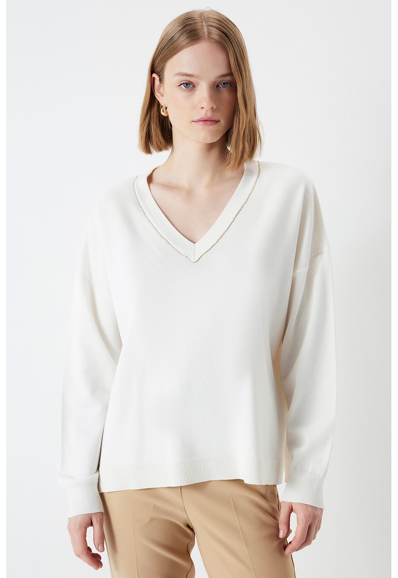 Caracteristici Tip produs: pulover Culoare: crem Imprimeu: uni Material: viscoza