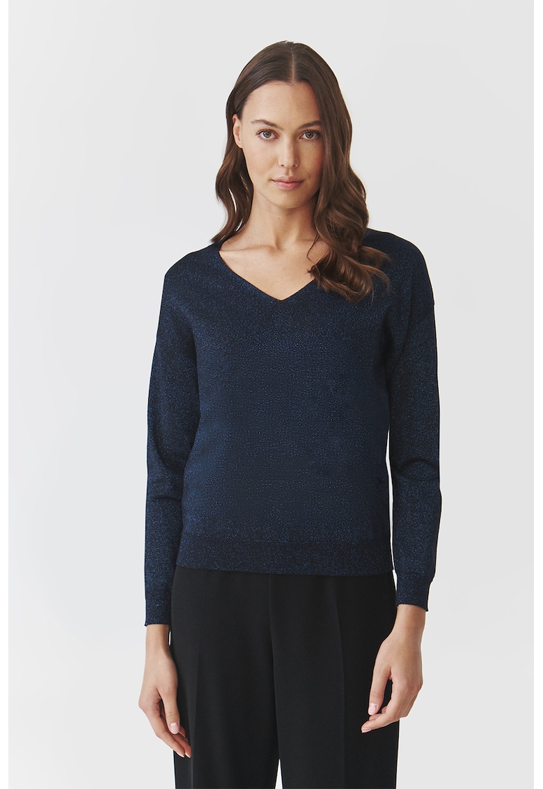 - viscoza Model: in v Croiala: regular fit Sistem inchidere: fara inchidere Lungime maneca: maneca lunga Detalii: aspect stralucitor Compozitie Exterior: 61% viscoza