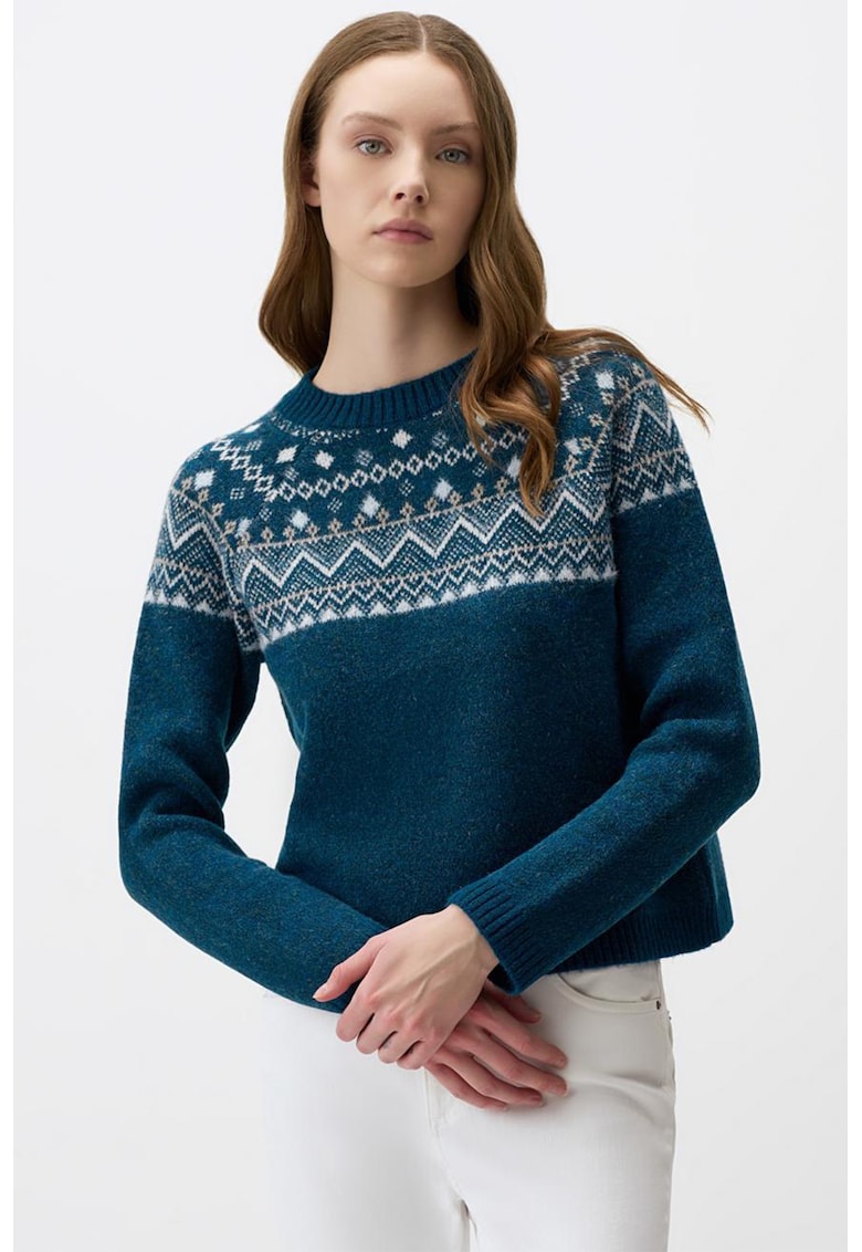 Caracteristici Tip produs: pulover Culoare: albastru petrol Imprimeu: craciun Material: sintetic