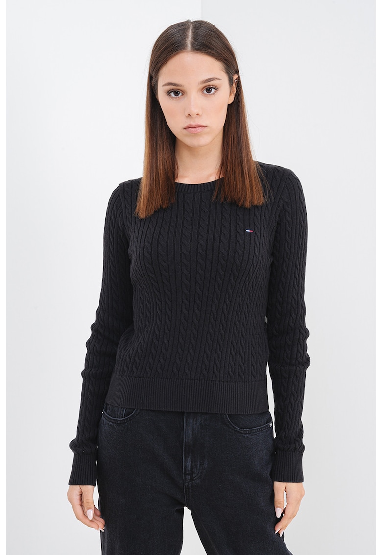 Caracteristici Tip produs: pulover Culoare: negru Imprimeu: uni Material: bumbac organic Model: decolteu la baza gatului Lungime maneca: maneca lunga Compozitie Exterior: 100% bumbac organic Info model Modelul poarta un produs de marimea S. Marimi model: 174 cm inaltime