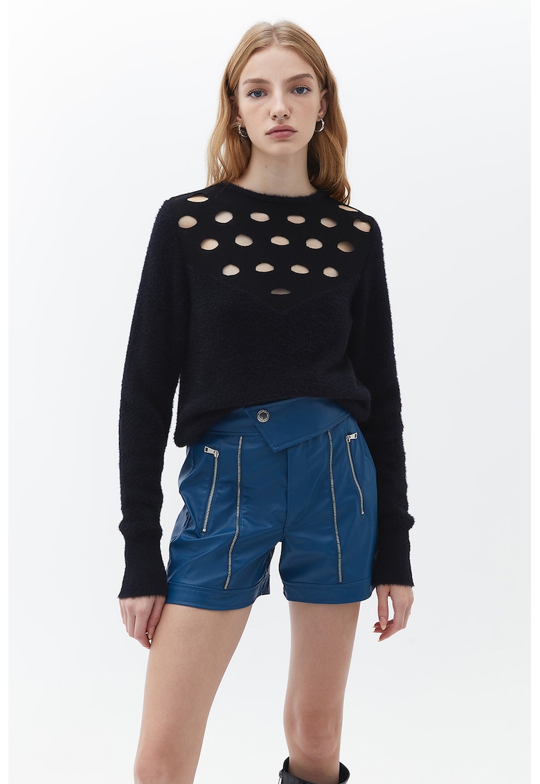 Caracteristici Tip produs: pulover Culoare: negru Imprimeu: uni Material: poliamida Model: decolteu la baza gatului Croiala: regular fit Sistem inchidere: fara inchidere Lungime maneca: maneca lunga Detalii: perforatii Compozitie Exterior: 100% poliamida