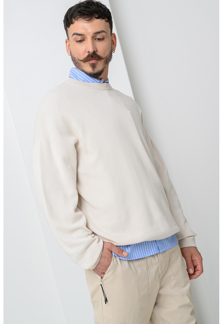 Caracteristici Culoare: alb fildes Imprimeu: uni Material: bumbac Croiala: regular fit Sistem inchidere: fara inchidere Model: decolteu la baza gatului Lungime maneca: maneca lunga Compozitie Exterior: 100% bumbac Info model Modelul poarta un produs de marimea M. Marimi model: 187 cm inaltime